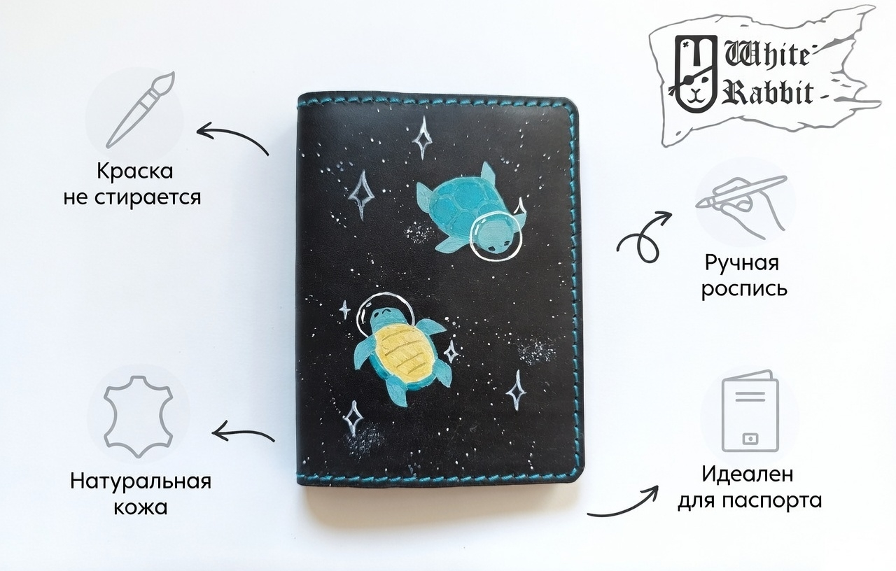 Кожаная обложка ручной работы с художественной росписью.